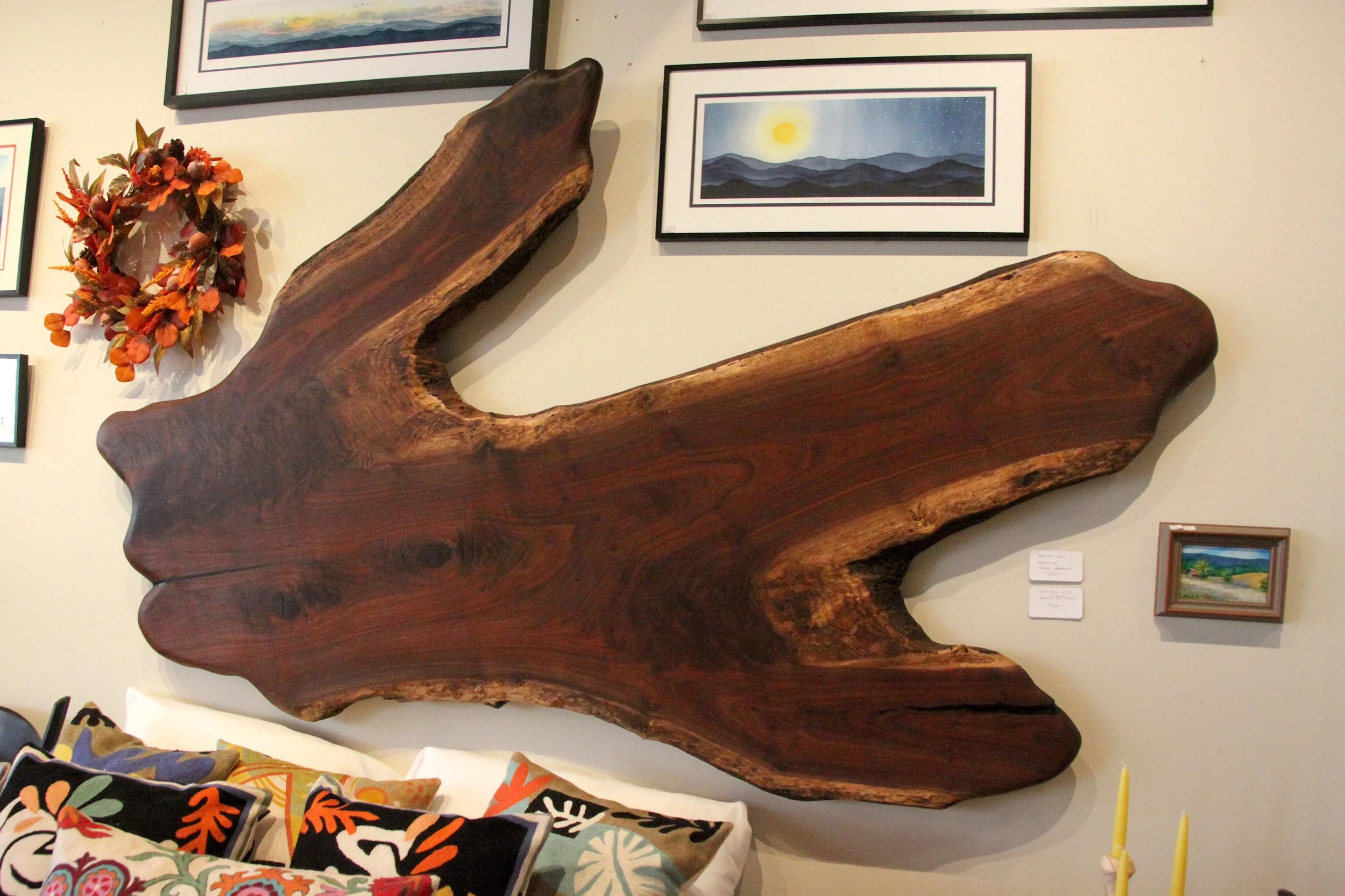 Categories: All ACCESSORIES Decorative Bowls + Boards Bath Caddy Candles Scented Candles + Oils Tapers + Pillars Candle Holders Clocks Tabletop Clocks Wall Clocks Outdoor Bird Feeders Chimes Rugs Cowhide Handwoven Kilim Heirloom + Jewelry Boxes Throw Blankets Throw Pillows FURNITURE Foot Stools Bedframes + Headboards Benches Chests Seating Chairs Bar Stools Step Stools Standing Desks Tables Dining Tables End + Side Tables Console Tables Coffee Tables Bar Tables KITCHEN Bar Accessories Wine Accessories Wine Racks Boards Kitchen Accessories Handles Lazy Susans LIGHTING Chandeliers Floor Lamps Night Lights Pendants Table Lamps WALLS Art Paintings Photography Mirrors Wall Accessories Accessories Hooks Mantels + Floating Shelves SHOP All | ACCESSORIES | FURNITURE | KITCHEN | LIGHTING | WALLS | Striped Charcuterie Board $150.00 Add To Cart Added! Faux Bison Wall Mount $225.00 Add To Cart Added! "Buffalo at Sunset" Watercolor Print $135.00 Add To Cart Added! "The Wild Atlantic Way" Original Watercolor $1,800.00 Add To Cart Added! Ambrosia Maple Mirror $825.00 Add To Cart Added! Walnut Mirror $900.00 Add To Cart Added! Walnut Mirror $900.00 Add To Cart Added! Foldable Walnut Step Stool $750.00 Add To Cart Added! Maple and Elm Foot Stool $250.00 Add To Cart Added! Maple and Elm Foot Stool $250.00 Add To Cart Added! Curly Maple Clock $95.00 Add To Cart Added! Ambrosia Maple Clock $150.00 Add To Cart Added! Ambrosia Maple Clock $110.00 Add To Cart Added! Sap Cherry Clock $95.00 Add To Cart Added! Sap Walnut Clock $125.00 Add To Cart Added! Sap Cherry Clock $125.00 Add To Cart Added! Walnut Flintstone Bench $450.00 Add To Cart Added! Elm and Walnut Dining Table $4,400.00 Add To Cart Added! 24" Maple and Cherry Saddle Stool $765.00 Add To Cart Added! 24" Maple and Cherry Saddle Stool $765.00 Add To Cart Added! 24" Walnut Saddle Stool $765.00 Add To Cart Added! Live Edge Maple and Walnut Sofa Table $1,800.00 Add To Cart Added! Live Edge Cherry Console Table $1,800.00 Add To Cart Added! Forged Cone Candle Holders (Set) $84.00 Add To Cart Added! Cherry 4 Taper Candle Holder $55.00 Add To Cart Added! Striped Bowl $85.00 Add To Cart Added! Curly Ash Globe Bowl $103.00 Add To Cart Added! Wooden Vessel $295.00 Add To Cart Added! 29" Wormy Curly Maple and Walnut Saddle Stool $925.00 Add To Cart Added! Curly Maple Jewelry Box $300.00 Add To Cart Added! Curly Maple Hinged Box $395.00 Add To Cart Added! Ambrosia Maple Box $425.00 Add To Cart Added! Pig with Glasses Pillow $78.00 Add To Cart Added! Cow with Floral Crown Pillow $82.00 Add To Cart Added! Cat with Floral Bowtie Pillow $78.00 Add To Cart Added! Kaveri Runner $350.00 Add To Cart Added! Juhi Runner $242.00 Add To Cart Added! Ira Runner $242.00 Add To Cart Added! Multi Color Hemp & Cotton Rug $302.00 Add To Cart Added! Branch Hook $22.00 Add To Cart Added! Corinthian Bells 50in Windchime $278.00 Midnight Blue Patina Green Add To Cart Added! Corinthian Bells 36in Windchime $126.00 Black Patina Green Add To Cart Added! Shenandoah Melodies 29in Windchime $85.00 Black Green Add To Cart Added! Corinthian Bells 44in Windchime $168.00 Midnight Blue Patina Green Add To Cart Added! Corinthian Bells 27in Windchime $87.00 Black Copper Vein Green Patina Green Add To Cart Added! Festival 24in Windchime $70.00 Bronze Forest Green Add To Cart Added! Shenandoah Melodies 26in Windchime $70.00 Black Copper Vein Green Plum Add To Cart Added! "Who Hung the Moon" Star Clock $180.00 Add To Cart Added! "After Midnight" Moon Clock $180.00 Add To Cart Added! "Life with Dogs" Lazy Susan $218.50 Add To Cart Added! "Your Life is Art" Lazy Susan $218.50 Add To Cart Added! "Dancing Birds" Lazy Susan $218.50 Add To Cart Added! "Dream in Color" Lazy Susan $218.50 Add To Cart Added! "I Can't Get A Signal" Lazy Susan $218.50 Add To Cart Added! Corinthian Bells 30in Windchime $105.00 Green Patina Green Midnight Blue Plum Sky Blue Add To Cart Added! Meditation Chime $78.00 Add To Cart Added! Tall Wave Lamp $600.00 Green Natural Add To Cart Added! Cocoa Leaf Drum Pendant $400.00 Cream Green Add To Cart Added! Leaf Nightlight $28.00 Orange Purple Natural Sea Blue Green Burgundy Yellow Add To Cart Added! Bird Feeder $75.00 Brown Purple Green Add To Cart Added! Walnut and Maple Swedish Door Harp $165.00 Add To Cart Added! Walnut and Maple Swedish Door Harp $110.00 Add To Cart Added! Stained Glass Nightlights $30.00 Black Bird Horse Blue Bird Cardinal Starburst Cross Angel Buffalo Mountain Bee Moth Sand Dollar Dragonfly Add To Cart Added! Cedar, Cherry, and Maple Cheese Board and Slicer $134.00 Add To Cart Added! Ambrosia Maple Wine Rack $750.00 Add To Cart Added! "Cat Scratch Fever" Lazy Susan $218.50 Add To Cart Added! Black Walnut Foot Stool $420.00 Add To Cart Added! Tackshop Counter Stool from $225.00 Select Size 27" 29" Add To Cart Added! Walnut and Hickory Side Chair $1,600.00 Add To Cart Added! Hand Carved Walnut Dining Chair $2,000.00 Add To Cart Added! Elm and Walnut Live Edge Chest $1,650.00 Add To Cart Added! Live Edge Walnut Chest $1,850.00 Add To Cart Added! Hot Air Balloon Blanket $125.00 Add To Cart Added! Butterfly Blanket $125.00 Add To Cart Added! Walnut 3 Taper Candle Holder $55.00 Add To Cart Added! Elm 7 Taper Candle Holder $75.00 Add To Cart Added! Curly Maple Vase $204.00 Add To Cart Added! Spalted Maple Bowl/Vase $295.00 Add To Cart Added! Walnut Bowl with Malachite Inlay $580.00 Add To Cart Added! Hourglass Table Lamp $210.00 Multi Color Green Cream Blue Add To Cart Added! Mini Square Table Lamp $84.00 Green Red Orange Blue Cream Mulit Color Add To Cart Added! Fortune Table Lamp $150.00 Green Cream Blue Add To Cart Added! Leaflet Table Lamp $180.00 Add To Cart Added! Twist Table Lamp $200.00 Add To Cart Added! Mini Guyabano Lamp $82.50 Purple Red Multi Color Blue Orange Add To Cart Added! Live Edge Elm Table Topper $225.00 Add To Cart Added! Floating Walnut Headboard $2,200.00 Add To Cart Added! Live Edge Cherry Coffee Table with Metal Base $1,850.00 Add To Cart Adde